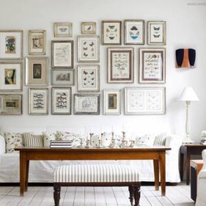 Начнём с самого простого — множество красивых рамок с семейными фото, картинами или поделками детей легко объединятся в интересную композицию на стене.
