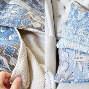 Мы нашли для вас, уважаемые читатели, мастер-класс по созданию удивительной красоты декоративных подушек на основе текстильных ковриков. Нам нравятся мягкие текстуры, синие цвета и забавные сплетения узоров. Этот текстиль в качестве ковриков прекрасен, но и немного тонкий для них. Поэтому идея превращения в текстурированные подушки для дивана кажется более уместной